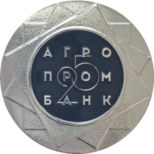 в центре на диске из тёмно-синей эмали – надписи: «АГРОПРОМБАНК», «25».